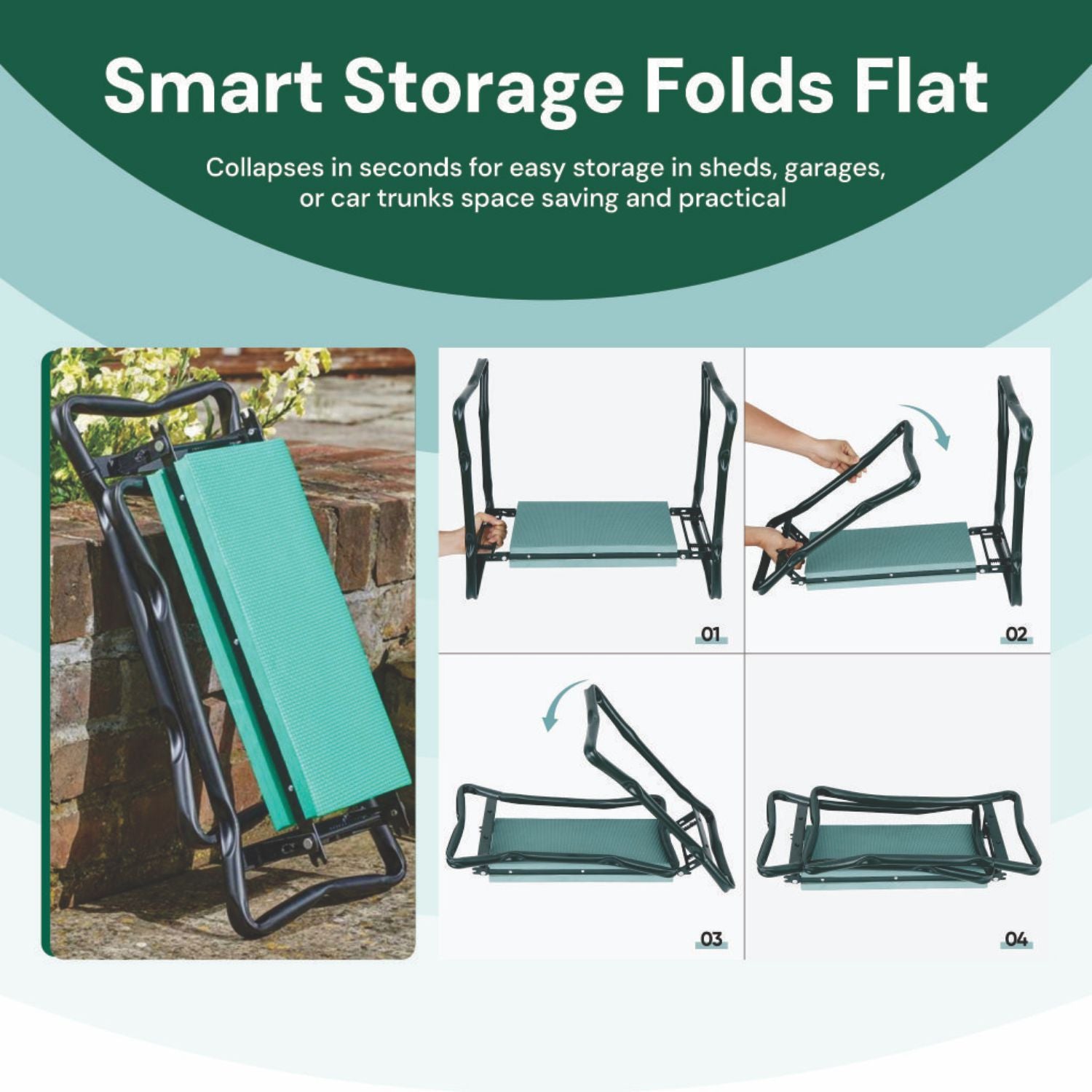 Easily fold and store the kneeler in your shed, garage, or even in the trunk of your car, maximizing space and convenience